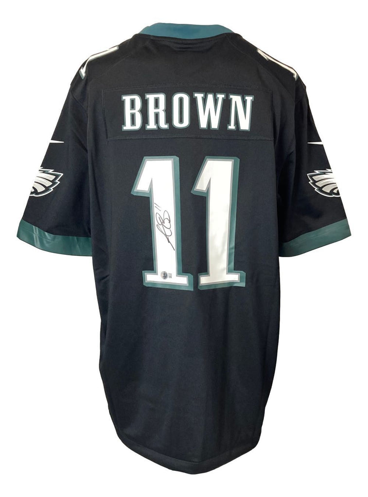 Featured is an AJ Brown signed Philadelphia Eagles Nike game replica jersey. This jersey has been hand signed by Brown and comes with the Beckett hologram and certificate of authenticity. This jersey size may vary. This jersey would make a great addition to any sports memorabilia collection!. SPECIFICATIONS Autographed By: AJ Brown Team: Philadelphia Eagles Sport: Football Authentication: Beckett Grading Services