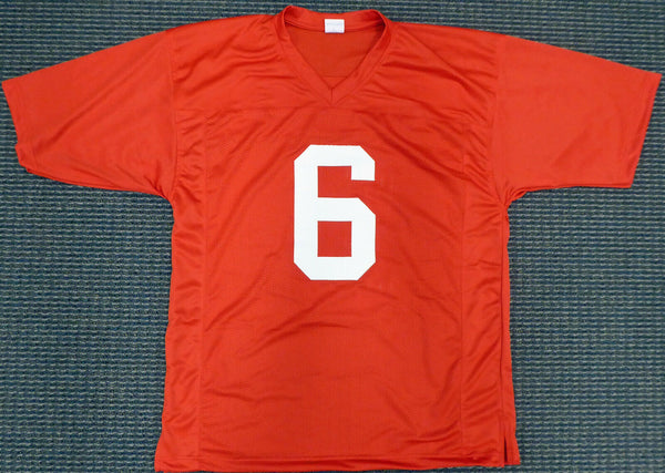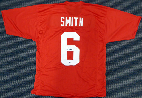 This is a Red Jersey that has been hand signed by Devonta Smith. This is a custom jersey with no name brand. The approximate size is XL. It has nice sewn in name and numbers. This item has been certified authentic by Beckett Authentication (BAS) and comes with their tamper-proof sticker and matching certificate of authenticity.