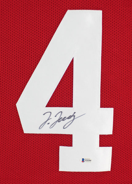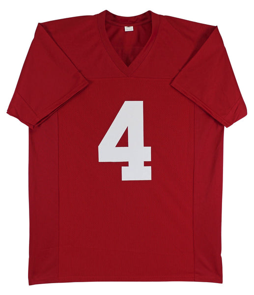 This Autographed Maroon Jersey has been Personally Signed by Jerry Jeudy of the Alabama Crimson Tide. This item is 100% Authentic to include a Certificate of Authenticity (COA) / hologram by Beckett Authentication Services. This is a stock item in which we have several available. The one you will receive will be of equal quality to the one pictured, some are signed horizontally on the number and some are vertically signed, you may receive one or the other. This item can be verified through BAS. This is a X-Large sized, non-branded, custom-stitched Jersey.