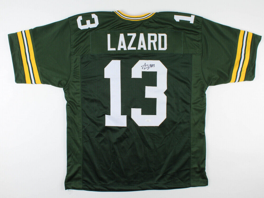 Custom on-field style jersey. Everything is sewn on size, XL. Has been hand-signed by Allen Lazard. The lot / autograph(s) includes an official James Spence Authentication (JSA) hologram and matching COA for authenticity purposes. The signing of this item was witnessed by JSA.Authentication: JSA COA
