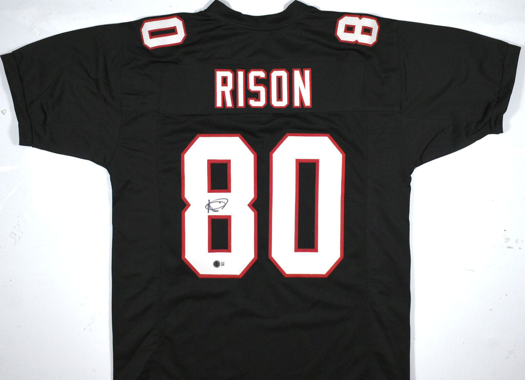 THIS IS NOT AN NFL JERSEY. THIS HAS NO TAGS, NO LOGOS, NO EMBLEMS. This is a hand autographed Jersey of Andre Rison. This is Custom Made (non name brand) Authentic Style (stitched letters and numbers) Jersey. This item has a Beckett Witnessed Authentication, which comes with a numbered hologram and a QR code for verification. You can view this item on the Beckett Authentication website, it shows when and where the item was signed. It was signed either at a public autograph appearance or a private signing. This is a stock photo of the item. Although you may not receive this exact item, the item you receive is virtually identical and brand new in great shape. Jersey size is XL. THIS IS NOT AN NFL JERSEY. THIS HAS NO TAGS, NO LOGOS, NO EMBLEMS. This is a hand autographed Jersey of Andre Rison. This is Custom Made (non name brand) Authentic Style (stitched letters and numbers) Jersey. This item has a Beckett Witnessed Authentication, which comes with a numbered hologram and a QR code for verification. You can view this item on the Beckett Authentication website, it shows when and where the item was signed. It was signed either at a public autograph appearance or a private signing. This is a stock photo of the item. Although you may not receive this exact item, the item you receive is virtually identical and brand new in great shape. Jersey size is XL.