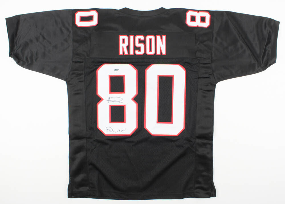 Custom on-field style jersey. Everything is sewn on, size XL. Hand-signed by Andre Rison. The lot / autograph(s) includes an official Schwartz Sports Hologram and matching COA for authenticity purposes.Authentication: Schwartz Sports COA