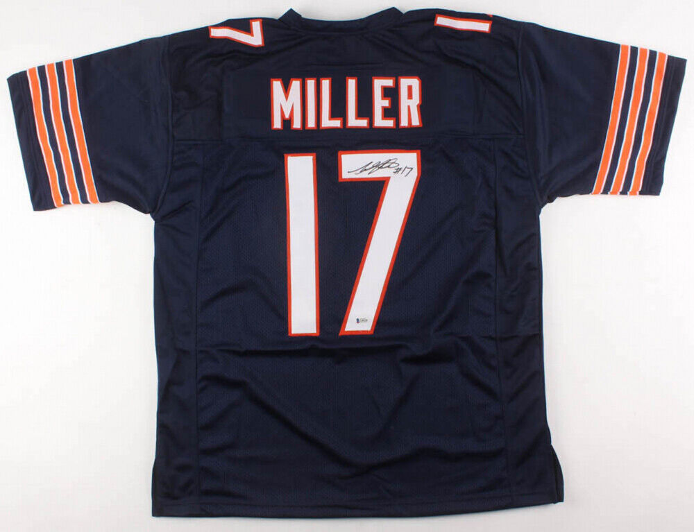 Custom on-filed style jersey. Everything is sewn on, size XL. Hand-signed in black felt-tip pen by Anthony Miller. The lot / autograph(s) includes an official Beckett Authentication Services serially numbered hologram and matching COA for authenticity purposes. The signing of this item was witnessed by Beckett.Authentication: Beckett COA