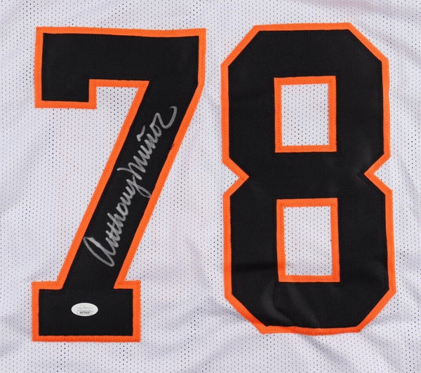 Custom on field style jersey with everything sewn on, size XL. Hand-signed by Anthony Munoz (Cincinnati Bengals, Tampa Bay Buccaneers, HOF).The autograph includes an official James Spence Authentication (JSA) hologram for authenticity purposes. The signing of this item was witnessed by JSA.Authentication: JSA Hologram