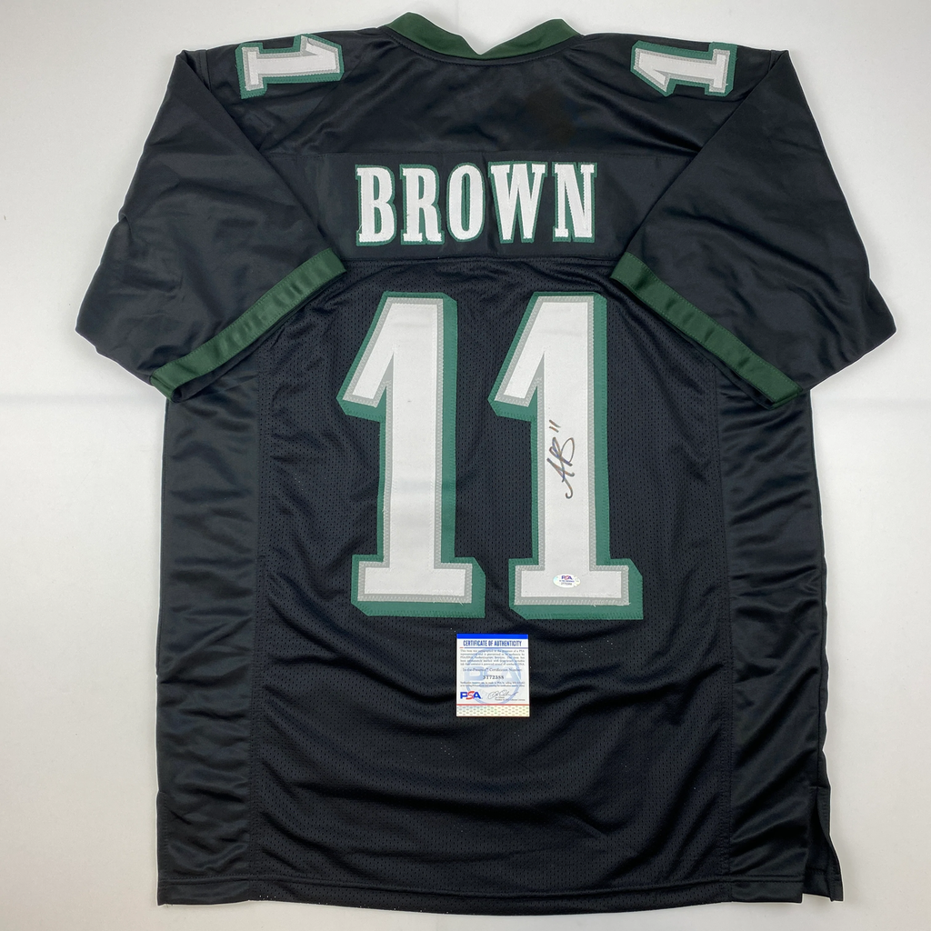 Autographed/Signed AJ A.J. Brown Philadelphia Black Football Jersey PSA/DNA COA Jersey has no brand names or logos. This is a custom jersey and was not manufactured by or in any manner associated with any professional sports league or manufacturer. This custom jersey carries no professional sports league designation. The item is intended to be an autographed collectible. The custom jersey displays the name and number of the player. This item in no way is affiliated with or connected to any professional sports organization. Size is XL.