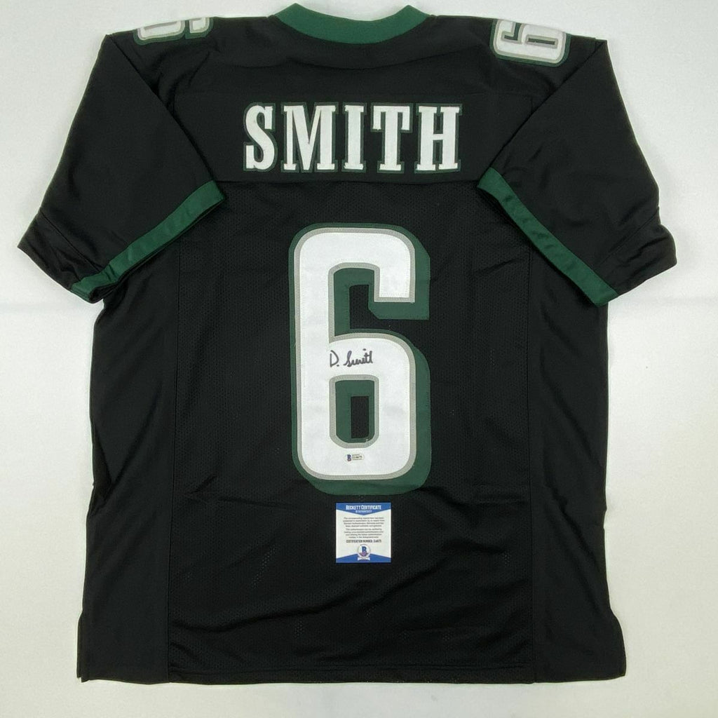 Autographed/Signed DEVONTA SMITH Philadelphia Black Football Jersey Beckett COA This is a custom jersey and was not manufactured by or in any manner associated with any professional sports league or manufacturer. This custom jersey carries no professional sports league designation. The item is intended to be an autographed collectible. Reference of team in the title is to allow the purchaser a point of association. The custom jersey displays the name, number and authenticated signature of the player. This item in no way is affiliated with or connected to any professional sports organization. The autograph, as always is guaranteed to be authentic and has been certified as authentic by a third-party, trusted authenticator. Size is XL unless otherwise noted.