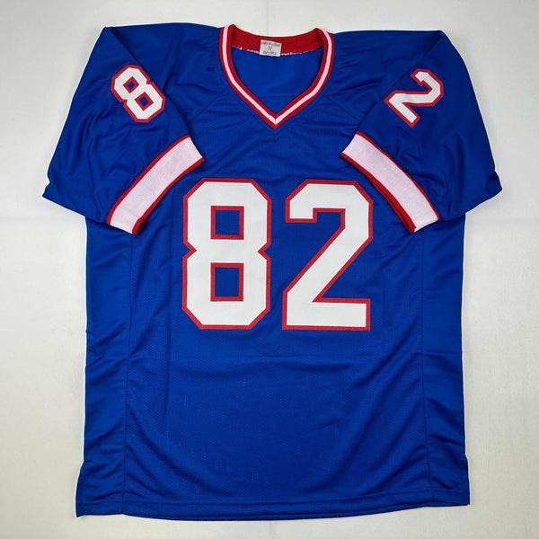 Autographed/Signed Don Beebe Buffalo Blue Football Jersey JSA COA Jersey has no brand names or logos. This is a custom jersey and was not manufactured by or in any manner associated with any professional sports league or manufacturer. This custom jersey carries no professional sports league designation. The item is intended to be an autographed collectible. The custom jersey displays the name and number of the player. This item in no way is affiliated with or connected to any professional sports organization. Size is XL.