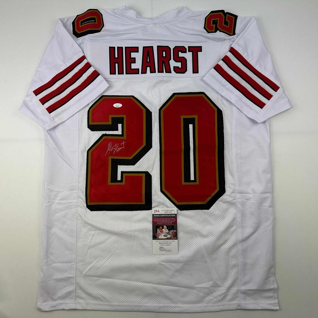 Autographed/Signed Garrison Hearst San Francisco White Football Jersey JSA COA Jersey has no brand names or logos. This is a custom jersey and was not manufactured by or in any manner associated with any professional sports league or manufacturer. This custom jersey carries no professional sports league designation. The item is intended to be an autographed collectible. The custom jersey displays the name and number of the player. This item in no way is affiliated with or connected to any professional sports organization. Size is XL.