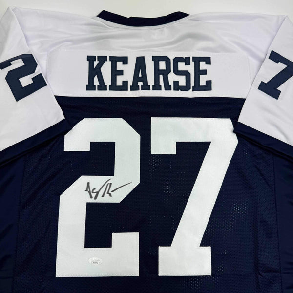 Autographed/Signed Jayron Kearse Dallas Thanksgiving Football Jersey JSA COA Jersey has no brand names or logos. This is a custom jersey and was not manufactured by or in any manner associated with any professional sports league or manufacturer. This custom jersey carries no professional sports league designation. The item is intended to be an autographed collectible. The custom jersey displays the name and number of the player. This item in no way is affiliated with or connected to any professional sports organization. Size is XL.