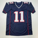 Autographed/Signed Julian Edelman New England Blue Football Jersey JSA COA Jersey has no brand names or logos. This is a custom jersey and was not manufactured by or in any manner associated with any professional sports league or manufacturer. This custom jersey carries no professional sports league designation. The item is intended to be an autographed collectible. The custom jersey displays the name and number of the player. This item in no way is affiliated with or connected to any professional sports organization. Size is XL.