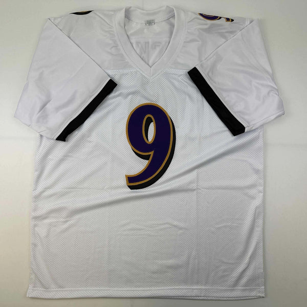 Autographed/Signed Justin Tucker Baltimore White Football Jersey JSA COA Jersey has no brand names or logos. This is a custom jersey and was not manufactured by or in any manner associated with any professional sports league or manufacturer. This custom jersey carries no professional sports league designation. The item is intended to be an autographed collectible. The custom jersey displays the name and number of the player. This item in no way is affiliated with or connected to any professional sports organization. Size is XL.