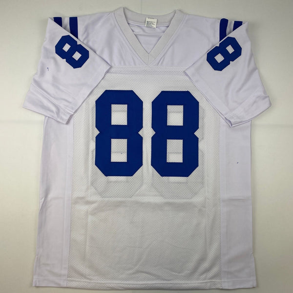 Autographed/Signed Marvin Harrison Indianapolis White Football Jersey JSA COA Jersey has no brand names or logos. This is a custom jersey and was not manufactured by or in any manner associated with any professional sports league or manufacturer. This custom jersey carries no professional sports league designation. The item is intended to be an autographed collectible. The custom jersey displays the name and number of the player. This item in no way is affiliated with or connected to any professional sports organization. Size is XL.