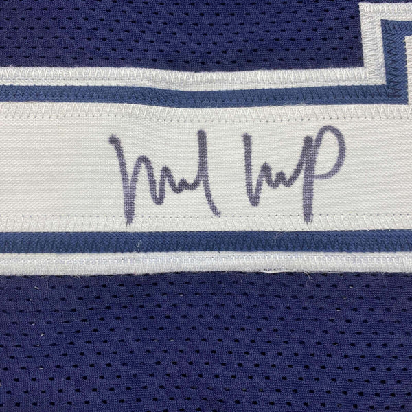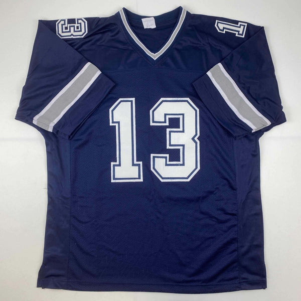 Autographed/Signed Michael Gallup Dallas Blue Football Jersey JSA COA Jersey has no brand names or logos. This is a custom jersey and was not manufactured by or in any manner associated with any professional sports league or manufacturer. This custom jersey carries no professional sports league designation. The item is intended to be an autographed collectible. The custom jersey displays the name and number of the player. This item in no way is affiliated with or connected to any professional sports organization. Size is XL.