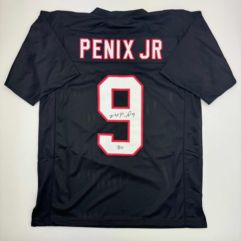 Autographed/Signed Michael Penix Jr. Atlanta Black Football Jersey Beckett COA Jersey has no brand names or logos. This is a custom jersey and was not manufactured by or in any manner associated with any professional sports league or manufacturer. This custom jersey carries no professional sports league designation. The item is intended to be an autographed collectible. The custom jersey displays the name and number of the player. This item in no way is affiliated with or connected to any professional sports organization. Size is XL.