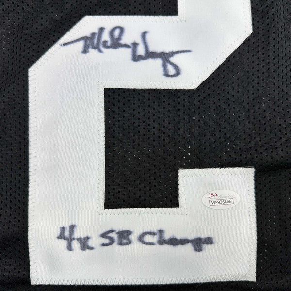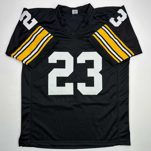 Autographed/Signed Mike Wagner 4x SB Champ Pittsburgh Black Jersey JSA COA Jersey has no brand names or logos. This is a custom jersey and was not manufactured by or in any manner associated with any professional sports league or manufacturer. This custom jersey carries no professional sports league designation. The item is intended to be an autographed collectible. The custom jersey displays the name and number of the player. This item in no way is affiliated with or connected to any professional sports organization. Size is XL.
