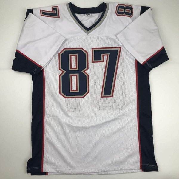 Autographed/Signed ROB GRONKOWSKI New England White Football Jersey Beckett COA This is a custom jersey and was not manufactured by or in any manner associated with any professional sports league or manufacturer. This custom jersey carries no professional sports league designation. The item is intended to be an autographed collectible. Reference of team in the title is to allow the purchaser a point of association. The custom jersey displays the name, number and authenticated signature of the player. This item in no way is affiliated with or connected to any professional sports organization. The autograph, as always is guaranteed to be authentic and has been certified as authentic by a third-party, trusted authenticator. Size is XL unless otherwise noted.