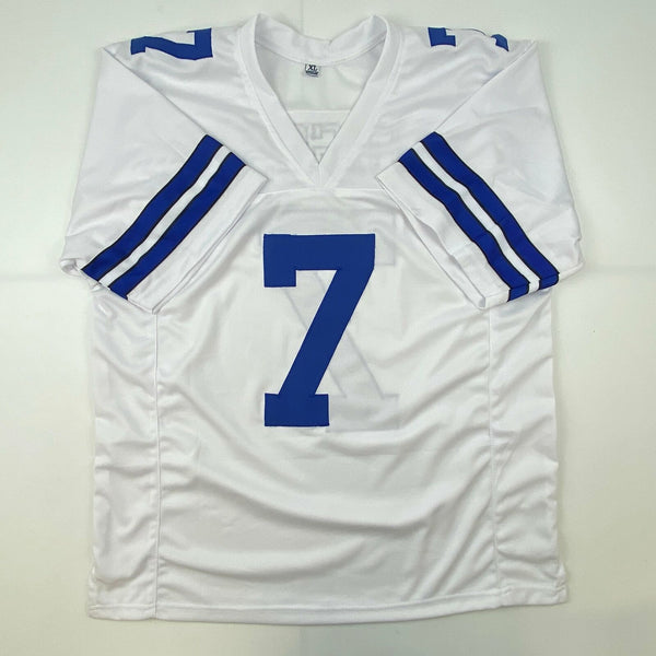 Autographed/Signed Trevon Diggs Dallas White Football Jersey JSA COA Auto Jersey has no brand names or logos. This is a custom jersey and was not manufactured by or in any manner associated with any professional sports league or manufacturer. This custom jersey carries no professional sports league designation. The item is intended to be an autographed collectible. The custom jersey displays the name and number of the player. This item in no way is affiliated with or connected to any professional sports organization. Size is XL.