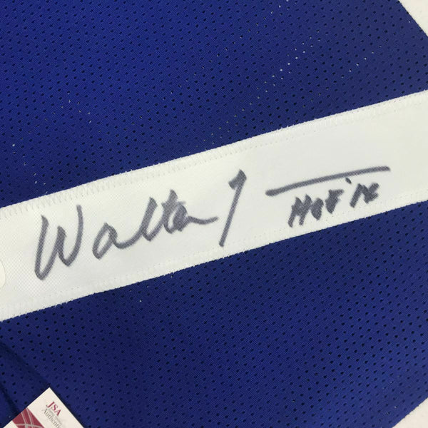 Autographed/Signed WALTER JONES HOF 14 Blue Football Jersey JSA COA Auto This is a custom jersey and was not manufactured by or in any manner associated with any professional sports league or manufacturer. This custom jersey carries no professional sports league designation. The item is intended to be an autographed collectible. Reference of team in the title is to allow the purchaser a point of association. The custom jersey displays the name, number and authenticated signature of the player. This item in no way is affiliated with or connected to any professional sports organization. The autograph, as always is guaranteed to be authentic and has been certified as authentic by a third-party, trusted authenticator. Size is XL unless otherwise noted.