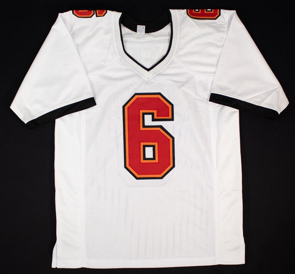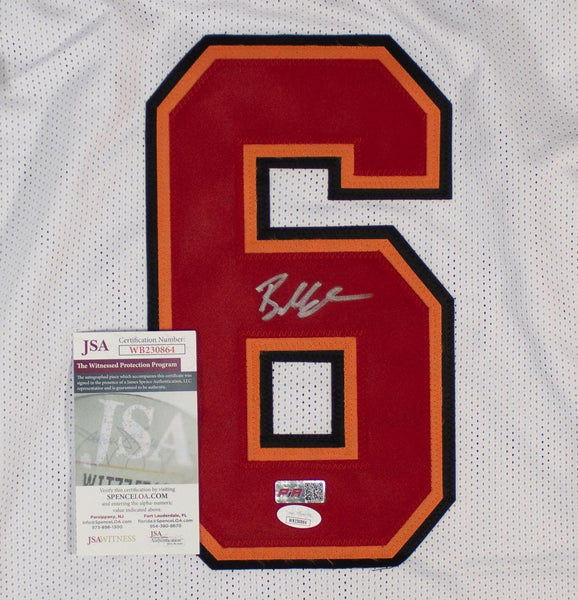 This autographed custom on-field style adult XL jersey has been personally hand-signed by Baker Mayfield of the Tampa Bay Buccaneers. This autograph is certified by James Spence Authentication's (JSA) Witnessed Protection Program. That means that a JSA representative was present when this item was signed. It comes with the numbered hologram and matching Certificate of Authenticity.