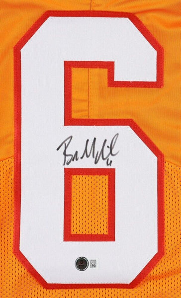 Custom on-field style pro cut throwback creamsicle jersey. Everything is sewn on, size XL. Hand-signed by Baker Mayfield.The lot / autograph(s) includes an official Beckett Authentication Services serially numbered hologram and QR code card for authenticity purposes. The signing of this item was witnessed by Beckett.Authentication: Beckett Hologram & QR code card