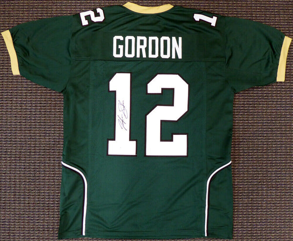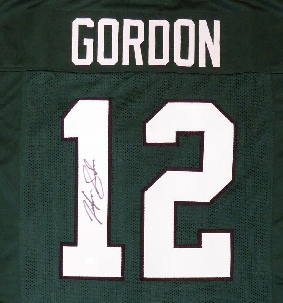 This is a Green Custom Jersey that has been hand signed by Josh Gordon. This is a custom jersey with no name brand. The approximate size is XL. It has nice sewn in name and numbers. This item has been certified authentic by Beckett (BAS) and comes with their tamper-proof sticker and matching certificate of authenticity.