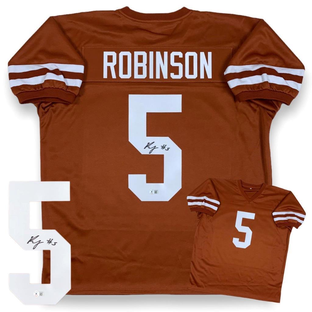 This signed item is brand new without tags or logos. The jersey is a custom jersey in a size Large / XL. This item will make a great gift or a great addition to any collection! ATHLETE: Bijan Robinson ITEM: Custom Jersey with Pro Tackle Twill AUTHENTICATION: This item comes with a Beckett serial #'ed hologram affixed to the item. To ensure authenticity, the hologram can be reviewed online. This process helps to ensure that the product purchased is authentic and eliminates any possibility of duplication or fraud. NOTE: All of our autographed jerseys are custom jerseys, unless otherwise noted. Our custom jerseys are NON-BRANDED, have NO logos, NO tags, NO patches, NO emblems. The non-branded jerseys are made specifically for the player(s) to sign, for collectible purposes.