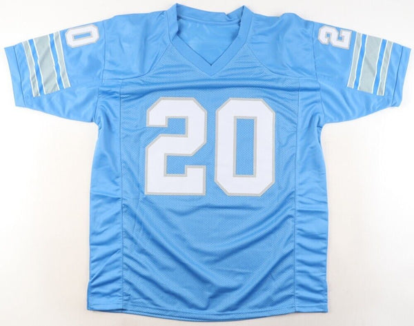 Custom on-filed style jersey. Everything is sewn on, size XL. Hand-signed and inscribed in black felt-tip pen by Billy Sims. The autograph(s) includes an official Schwartz Sports Hologram and matching COA for authenticity purposes.Authentication: Schwartz Sports COA