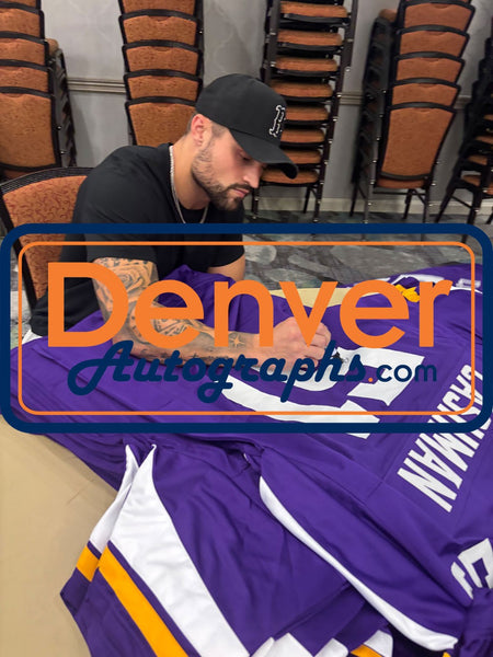The number in the listing title is just an inventory sku for our records and is not the authentication number. The item pictured is a stock photo unless otherwise noted. This is a Pro Style Size XL Purple Jersey with sewn on numbers that was personally autographed by Blake Cashman. Includes a certificate of authenticity from Beckett Authentication Services (BAS) and Denver Autographs. FREE SHIPPING within the USA on orders over $10!