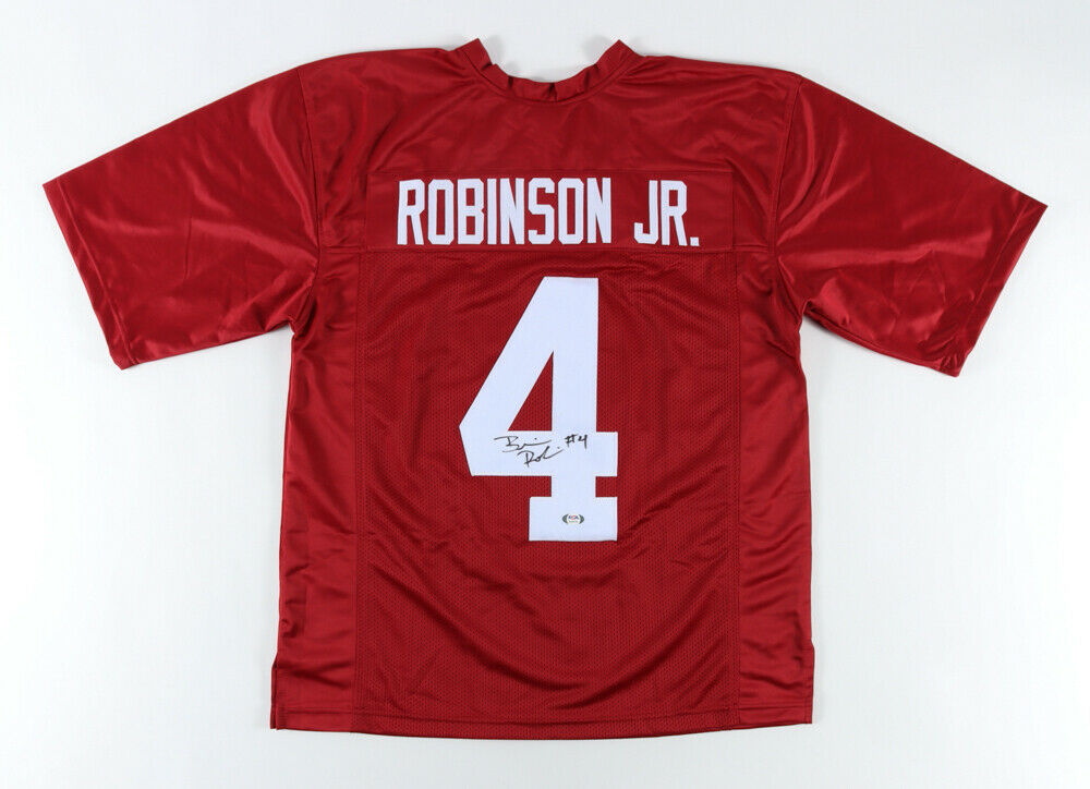 Custom on-field style jersey. Everything is sewn on, size XL. Hand-signed by Brian Robinson Jr.The lot / autograph(s) includes an official PSA/DNA hologram and matching COA for authenticity purposes.Authentication: PSA COA