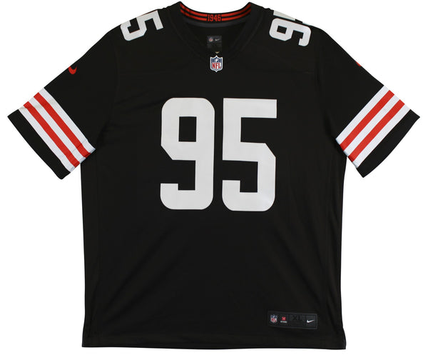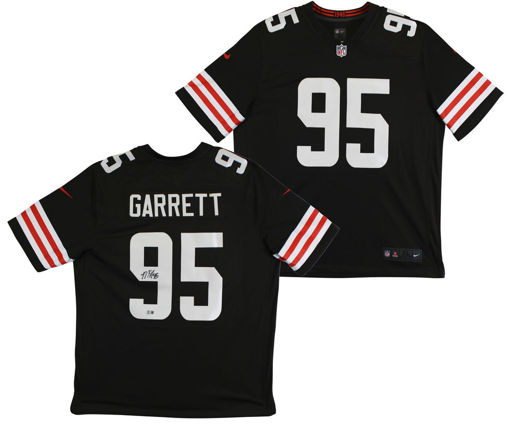 This Autographed Brown Nike Limited Jersey has been Personally Signed by Myles Garrett of the Cleveland Browns. This item is 100% Authentic to include a hologram by Beckett Authentication Services. This item will come with an affixed Beckett Authentication Services (BAS) authentication sticker, which includes a scannable QR code to verify authenticity. Please note that Beckett no longer provides serial-numbered COA cards, and the attached BAS sticker will serve as the complete authentication for this item. This is a BAS Witnessed Protection Program item which means a Beckett Authentication Service representative was present when this item was being signed. We have multiples of this same item. While the photographs are representative of this item, the size, placement and strength of the signature may vary. Each item is hand signed, therefore, each autograph is unique. Multiple sizes available. Reach out for availability.