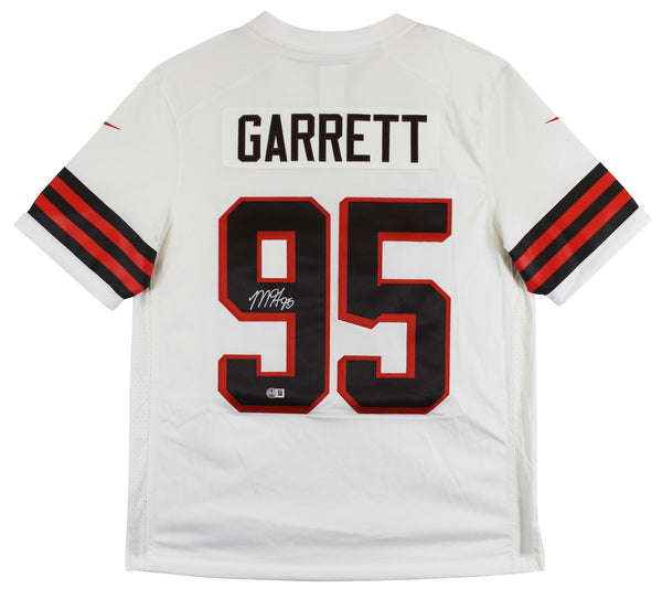 This Autographed White Nike Limited Jersey has been Personally Signed by Myles Garrett of the Cleveland Browns. This item is 100% Authentic to include a hologram by Beckett Authentication Services. This item will come with an affixed Beckett Authentication Services (BAS) authentication sticker, which includes a scannable QR code to verify authenticity. Please note that Beckett no longer provides serial-numbered COA cards, and the attached BAS sticker will serve as the complete authentication for this item. This is a BAS Witnessed Protection Program item which means a Beckett Authentication Service representative was present when this item was being signed. We have multiples of this same item. While the photographs are representative of this item, the size, placement and strength of the signature may vary. Each item is hand signed, therefore, each autograph is unique. Multiple sizes available. Reach out for availability.