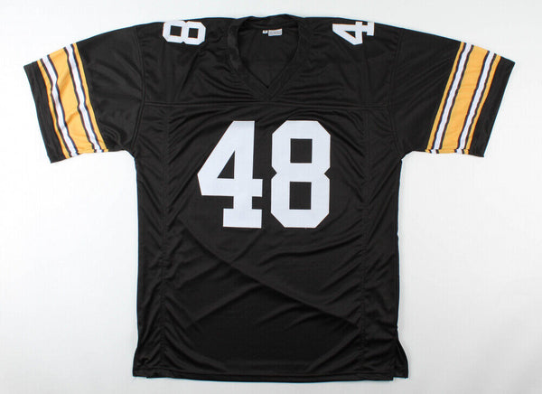 Custom on-field style jersey. Everything is sewn on, size XL. Hand-signed in black felt-tip pen by Bud Dupree. The lot / autograph(s) includes an official Beckett Authentication Services serially-numbered hologram and matching COA for authenticity purposes. The signing of this item was witnessed by Beckett.Authentication: Beckett COACustom on-field style jerseys are a more affordable option for autograph seekers. These jerseys do not have any brand name or tags and are made in the Philippines. They feature stitched on names and numbers and are made to look very similar to the on-field jerseys that the players wear. These custom jerseys are very commonly used in the memorabilia industry.