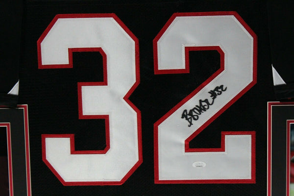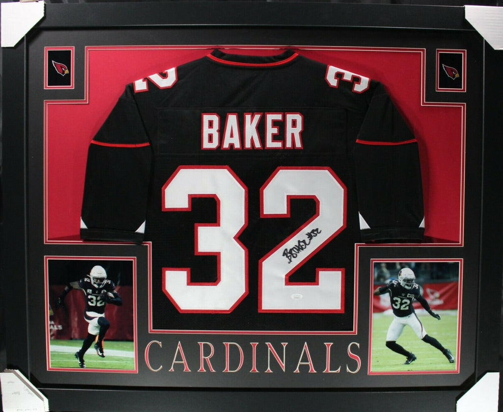 BUDDA BAKER AUTOGRAPHED & PROFESSIONALLY FRAMED PRO-STYLE JERSEY(Occasionally our own stock pictures are used at times due to quantity of framing, all frames will look identical as the one pictured)Item is accompanied with a Certificate of Authenticity issued by JSA and corresponding tamper proof hologram on the jersey. (JSA hologram only, missing card)THE FRAMED JERSEY MEASURES 35"x 44" & COMES WITH THE FOLLOWING:-UV Protected Acrylic-Triple Acid Free Team Colored Matting-2 High Quality 8"x10" Photos-Team Logo