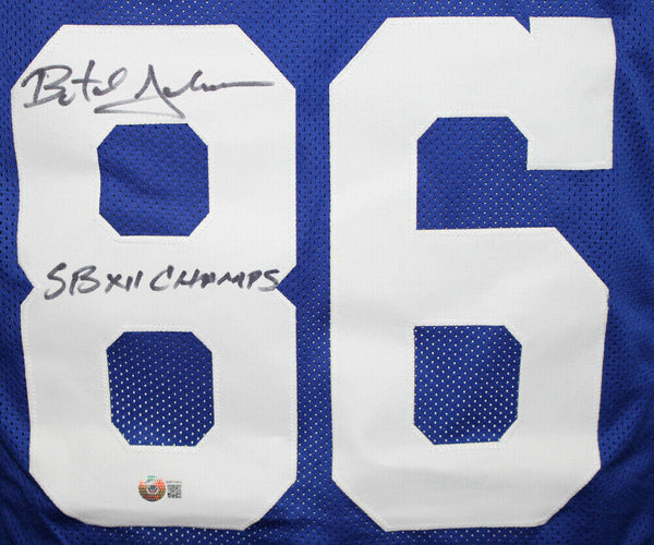 Butch Johnson Autographed/Signed Pro Style Blue XL Jersey SB Champs BAS 33984 The number in the listing title is just an inventory sku for our records and is not the authentication number. This is a custom pro style blue XL jersey with sewn on name and numbers that was personally autographed by Butch Johnson. Includes a certificate of authenticity from Beckett Authentication Services (BAS) and Denver Autographs.