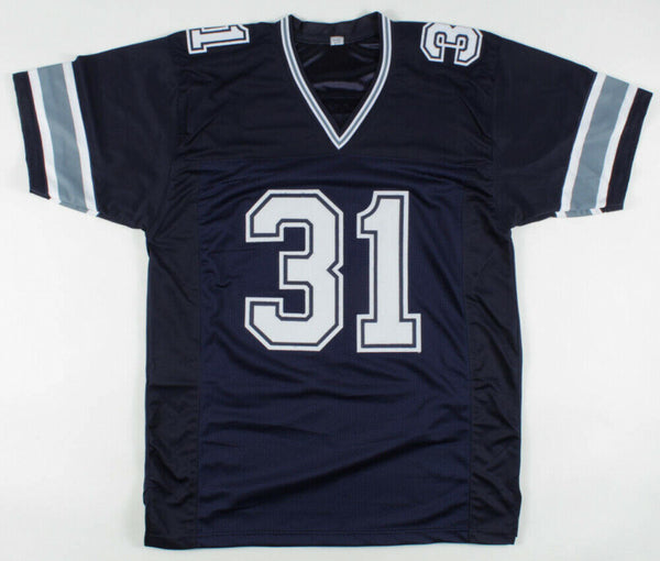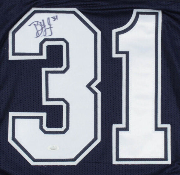 Custom on-field style jersey. Everything is sewn on, size XL. Hand-signed in black felt-tip pen by Byron Jones. The lot / autograph(s) includes an official James Spence Authentication (JSA) hologram for authenticity purposes. Authentication: JSA COA