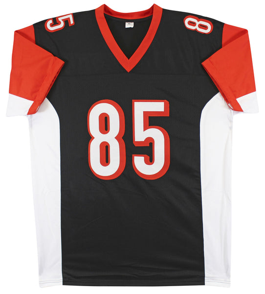 This Autographed Black Pro Style Jersey has been Personally Signed by Chad Johnson of the Cincinnati Bengals. This item is 100% Authentic to include a hologram by Beckett Authentication Services. This item may come with the new Beckett Authentication hologram that has a scannable QR code rather than the traditional COA. If you would like to have a COA, you are welcome to reach out to Beckett for a printed certification once you receive your item. This is a BAS Witnessed Protection Program item which means a Beckett Authentication Service representative was present when this item was being signed. We conducted an autograph signing with Chad Johnson where multiples of the same item were signed. While the photographs are representative of this item, the size, placement and strength of the signature may vary. Each item is hand signed, therefore, each autograph is unique. This item can be verified through BAS Witnessed. This is a X-Large sized, non-branded, custom-stitched Jersey.