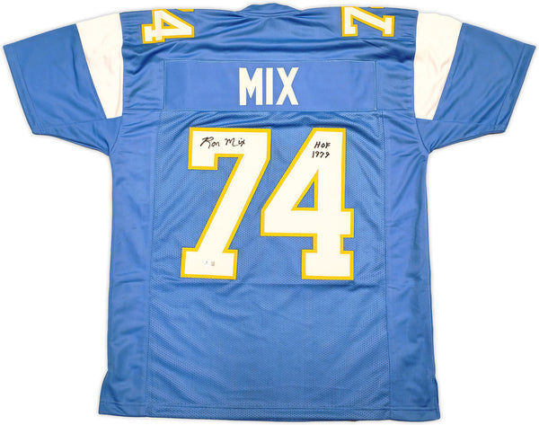 CHARGERS RON MIX AUTOGRAPHED BLUE JERSEY "HOF 1979" BECKETT WITNESS 230001
