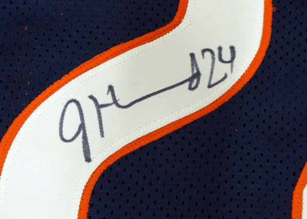 This is a Blue Custom Jersey that has been hand signed by Jordan Howard. This is a custom jersey with no name brand. The approximate size is XL. It has nice sewn in name and numbers. This item has been certified authentic by Beckett (BAS) and comes with their tamper-proof sticker and matching certificate of authenticity.