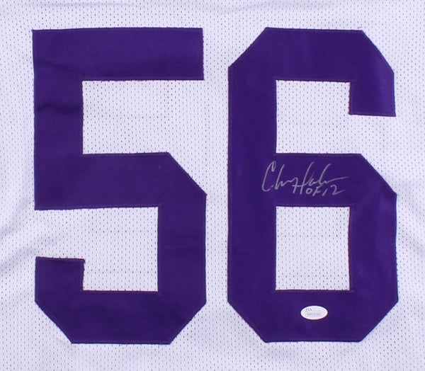 On-field style jersey. Everything is sewn on, size XL. Hand-signed and inscribed in Silver felt tip pen by Chris Doleman. The lot / autograph(s) includes an official James Spence Authentication (JSA) hologram and matching COA for authenticity purposes. The signing of this item was witnessed by JSA.Authentication: JSA COA