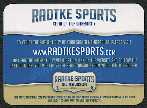 Custom on-field style jersey. Everything is sewn on, size XL. Hand-signed in black felt-tip pen by Chris Doleman. The lot / autograph(s) includes an official Radtke Sports hologram and matching COA for authenticity purposes. Also includes a proof picture from the signing.Authentication: Radtke COA
