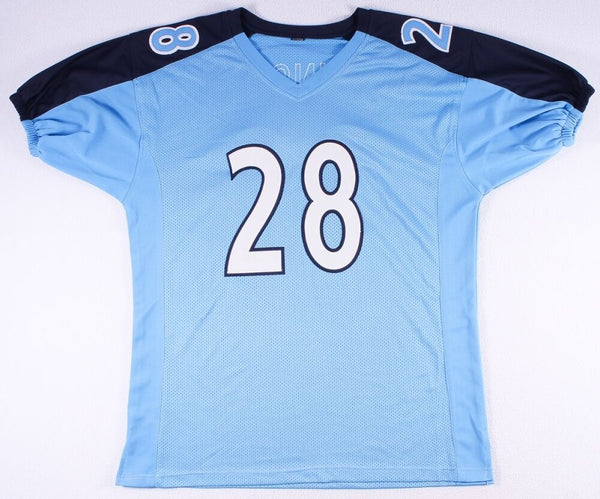 Custom on-field style jersey. Everything is sewn on, size XL. Hand-signed in black felt tip pen by Chris Johnson. The autograph includes an official James Spence Authentication (JSA) hologram and matching COA for authenticity purposes.Authentication: JSA COA