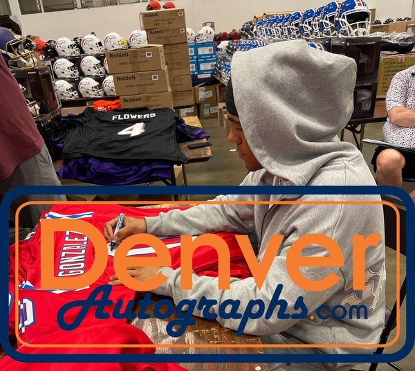 The number in the listing title is just an inventory sku for our records and is not the authentication number. The item pictured is a stock photo unless otherwise noted. This is a Pro Style Red Size XL Jersey with sewn on numbers that was personally autographed by Christian Gonzalez. Includes a certificate of authenticity from Beckett Authentication Services (BAS) and Denver Autographs.FREE SHIPPING within the USA on orders over $10!