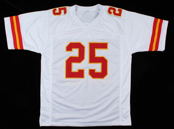Custom on-field style jersey. Everything is sewn on, size XL. Has been hand-signed in black felt-tip pen by Clyde Edwards-Helaire . The lot / autograph(s) includes an official James Spence Authentication (JSA) hologram and matching COA for authenticity purposes. The signing of this item was witnessed by JSA.Authentication: JSA COA