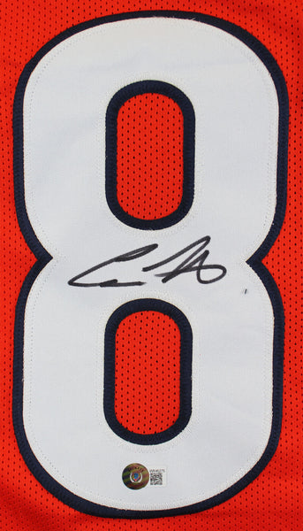 This Autographed Orange Pro Style Jersey has been Personally Signed by Cole Kmet of the Chicago Bears. This item is 100% Authentic to include a hologram by Beckett Authentication Services. This item may come with the new Beckett Authentication hologram that has a scannable QR code rather than the traditional COA. If you would like to have a COA, you are welcome to reach out to Beckett for a printed certification once you receive your item. This is a BAS Witnessed Protection Program item which means a Beckett Authentication Service representative was present when this item was being signed. We conducted an autograph signing with Cole Kmet where multiples of the same item were signed. While the photographs are representative of this item, the size, placement and strength of the signature may vary. Each item is hand signed, therefore, each autograph is unique. This item can be verified through BAS Witnessed. This is a X-Large sized, non-branded, custom-stitched Jersey.