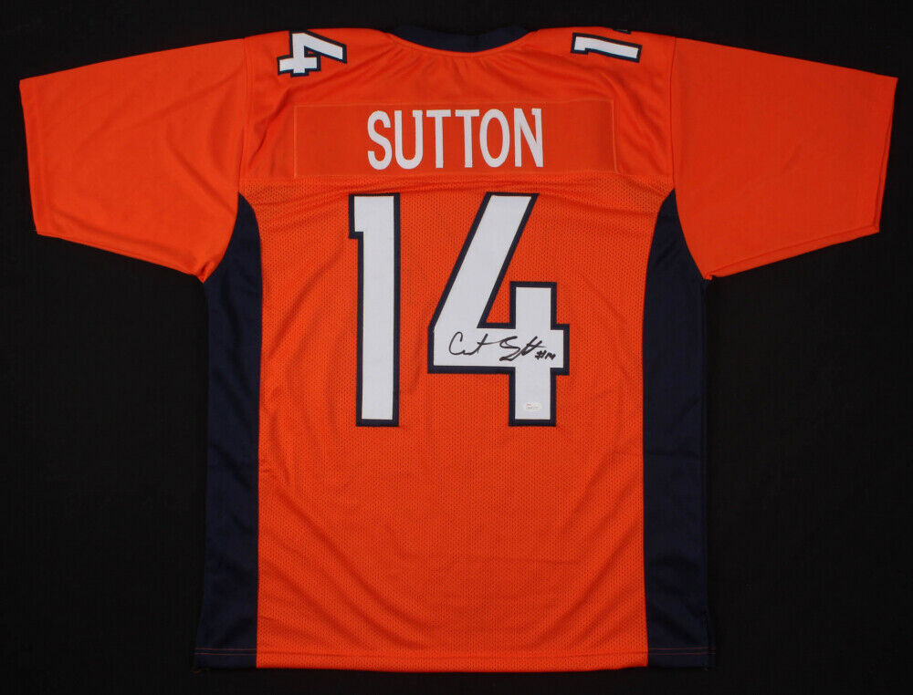 Custom on-field style jersey has everything sewn on, size XL. Hand-signed in black felt-tip pen by Courtland Sutton. The lot / autograph(s) includes an official James Spence Authentication (JSA) hologram and matching COA for authenticity purposes. The signing of this item was witnessed by JSA.Authentication: JSA COA