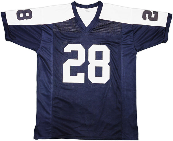 This is a Blue & White Throwback Jersey that has been hand signed by Darren Woodson. This is a custom jersey with no name brand. The approximate size is XL. It has nice sewn in name and numbers. This item has been certified authentic by Beckett Authentication (BAS) and comes with their tamper-proof sticker and matching certificate of authenticity.