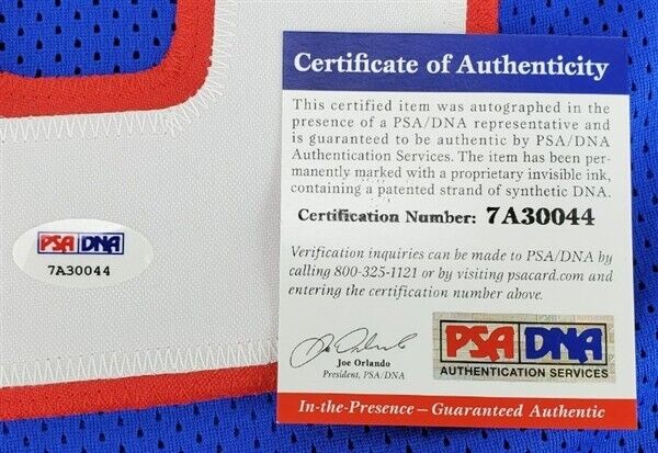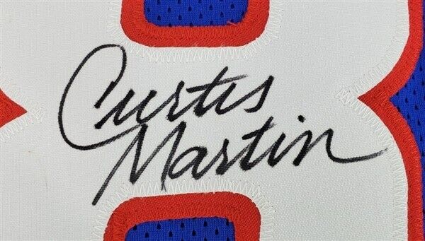 This autographed custom on-field style jersey has been personally hand-signed by Curtis Martin of the New England Patriots.This autograph is certified by PSA/DNA (Professional Sports Authenticators). It comes with the numbered hologram and matching Certificate of Authenticity.Custom on-field style jerseys are a more affordable option for autograph seekers. These jerseys do not have any brand name or tags and are made in the Philippines. They feature stitched on names and numbers and are made to look very similar to the on-field jerseys that the players wear. These custom jerseys are very commonly used in the memorabilia industry.