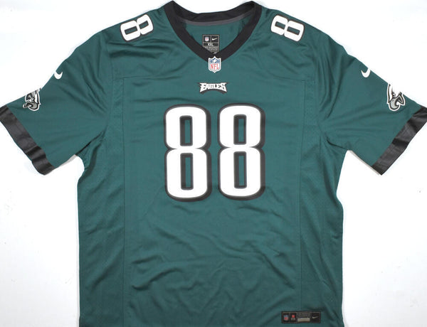 Dallas Goedert Autographed Philadelphia Eagles Green Nike Game Jersey - Fanatics *Silver This is a Dallas Goedert hand autographed Nike Game jersey. This item has a Fanatics Authentication, which comes with a Fanatic numbered sticker hologram and QR code for verification. You can view this item on the Fanatic Authentication website to see when and where it was signed. It was signed either at a public autograph appearance or a private signing. This is a stock photo of the item. Although you may not receive this exact item, the item you receive is virtually identical, brand new, and in great shape. Jersey size is XXL.