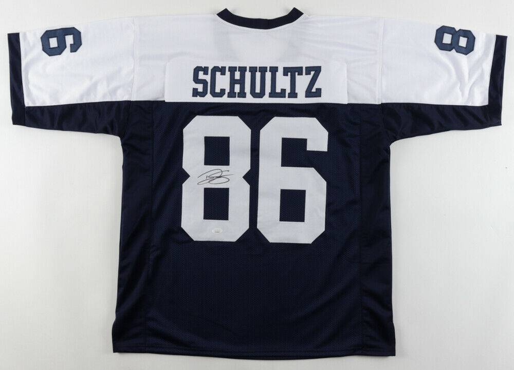 Custom on-field style jersey. Everything sewn on, size XL. Hand-signed in black felt-tip pen by Dalton Schultz (Stanford, Cowboys). The lot / autograph(s) includes an official James Spence Authentication (JSA) hologram and matching COA for authenticity purposes. The signing of this item was witnessed by JSA.Authentication: JSA COA