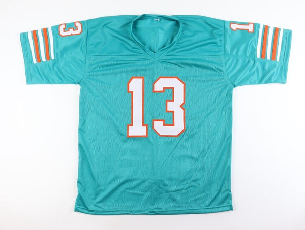 Custom jersey with everything sewn on, size XL. Hand-signed by Dan Marino (HOF).Dan Marino's career highlights have been custom stitched onto the back of the jersey below the reverse numbers.The autograph includes an official James Spence Authentication (JSA) hologram for authenticity purposes. The signing of this item was witnessed by JSA.Authentication: JSA Hologram